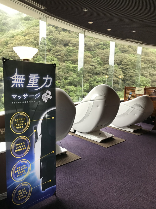 他に 浴衣の柄が選べる、大浴場手前の最新式マッサージチェアが無料で使える