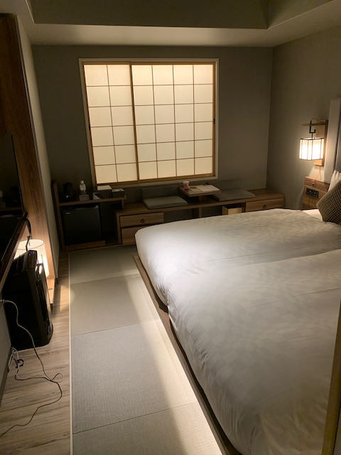 部屋は入り口で靴を脱ぐ作りで、窓には障子、襖のように見える内部ドアもあった。