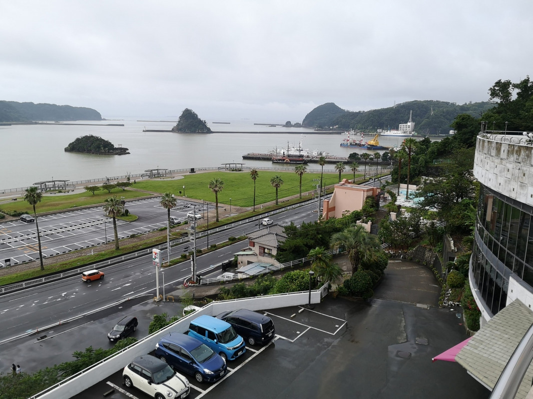 妻の海が見えるホテルの要望があり、下田のこちらのホテルを初めて予約しました。伊豆急下田の駅から車で5分ぐらいで、荷物がなければ散歩気分で歩こうと思えば歩ける距離です。ホテルの前に、道の駅がありこちらの寿司屋、魚どんやさんはお気に入りでリピートしました。こちらは、地魚の握りが美味しいですね。また、ホテルの前は公園とセブンもあり、何かと便利です。