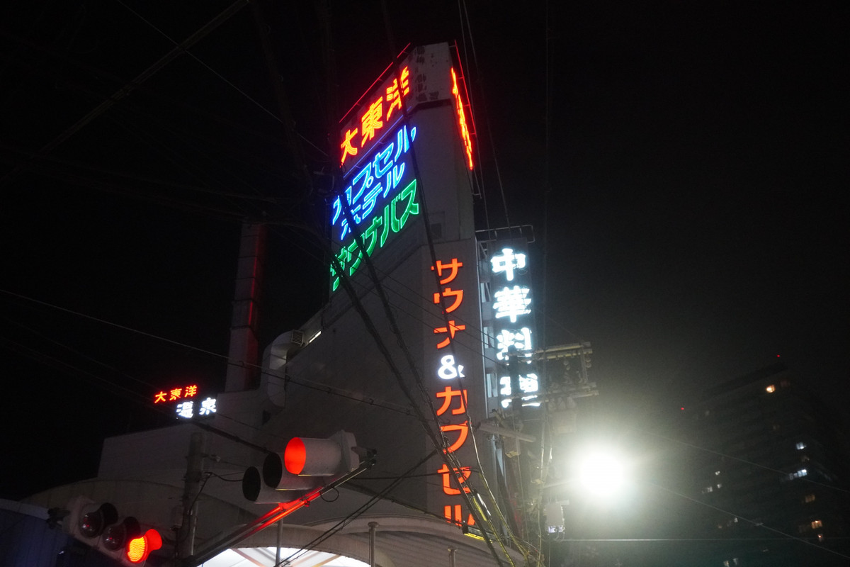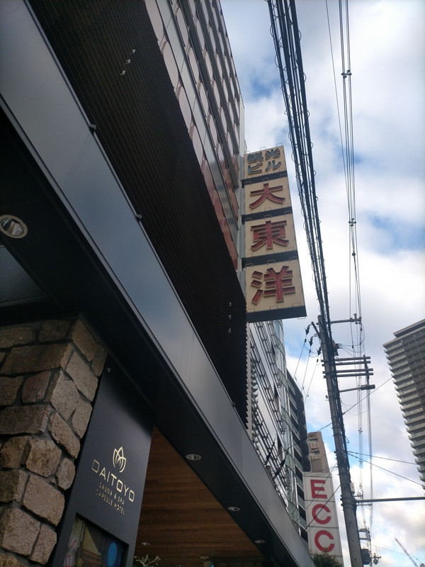 カプセルホテル大東洋は、大阪駅から歩いて15分くらい。建物は大通りに面していて、少し遠くからでも確認できました。
