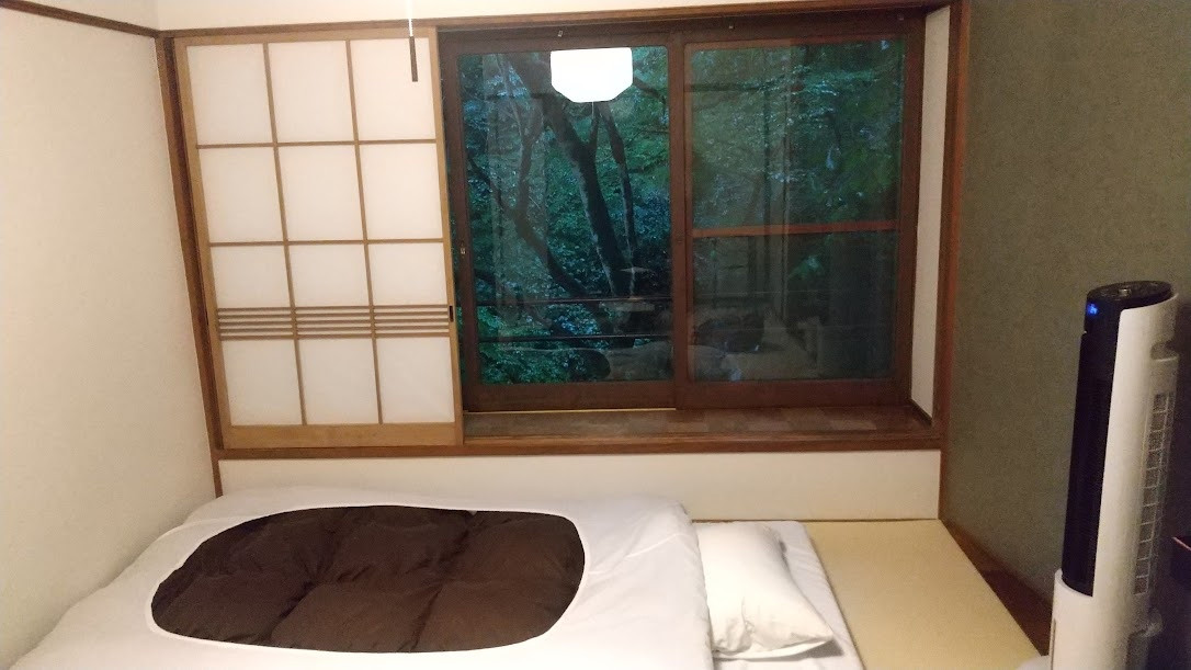 四万温泉の最奥、日向見薬師堂の裏にある古い旅館です。増築した新館と本館が一体になっています。本館の日向見川沿いの部屋に泊まりました。川の渓流が良く見えますが、雨の後で水流が多かったので、水流の音が部屋の中でもよく聞こえるので、静かに寝たい人には、反対側の日向見薬師側の部屋がお薦めです。