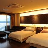 海に面した最上階の部屋に泊まりました。天井も飾りが施されるなど、素敵でした。小さな子供連れの家族が多いので、食事も温泉もそれなりに満足ですが、プライベート感は全くありませんでした。ただ、お土産屋さんや卓球施設など、娯楽設備も有るので、やはり大衆向けだと思います。
