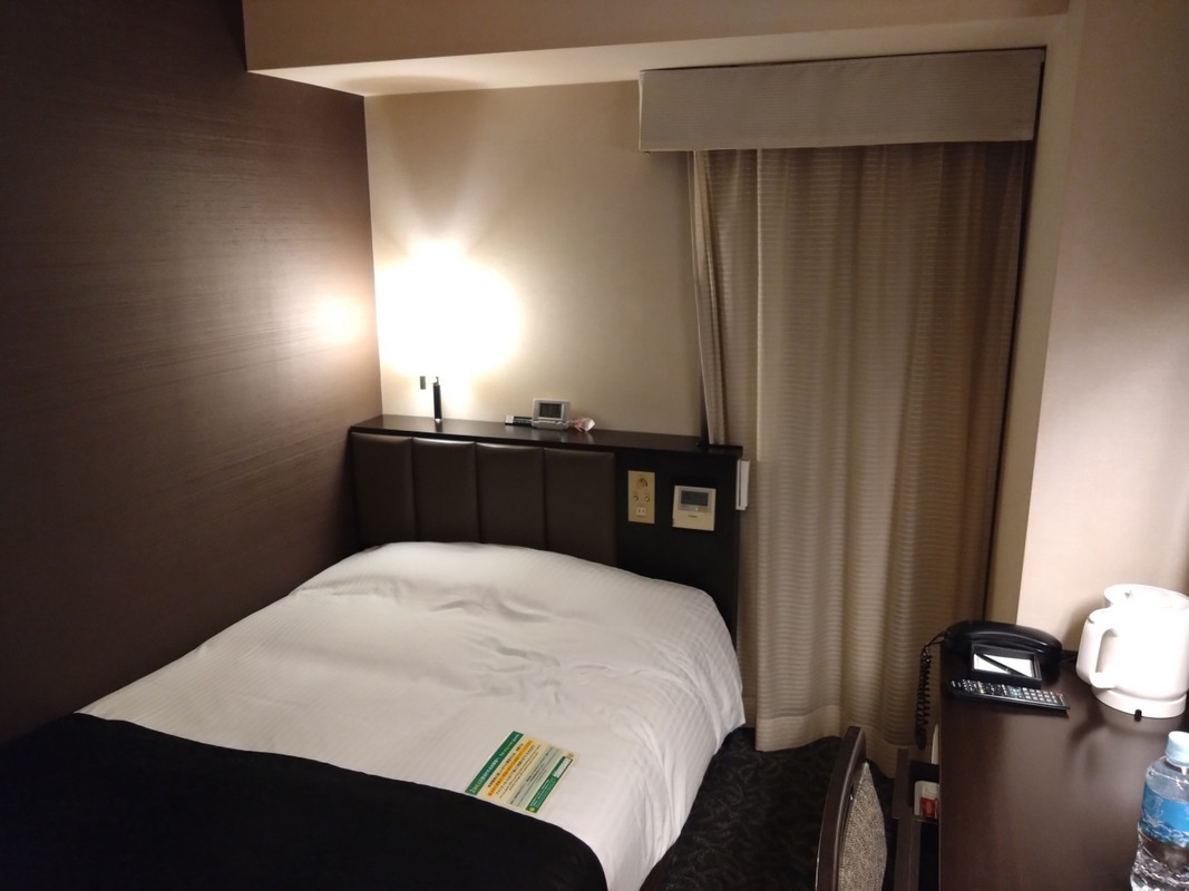 室内はいたってオーソドックス。壁は思ったより薄くなかったので隣の音などは気にならなかった。失礼ながらアパホテルってもっと安っぽいのをイメージしていたが思っていた以上にちゃんとしててよかった。後は価格かなぁ この時は6000円台だったけど最近は値上がり傾向(9000円以上 周辺ホテルは全て高騰している 2024.11.8現在)なのでもう少し安いと助かる1 / 5