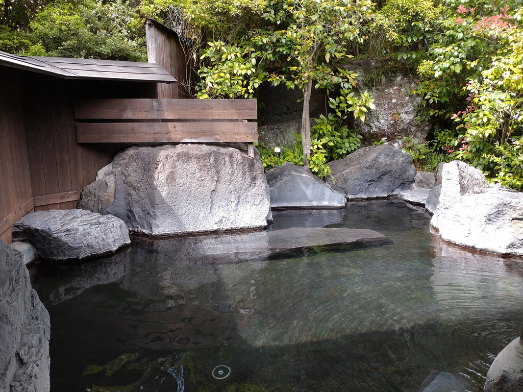 JRA由布院駅から徒歩15分くらい、亀の井バス岳本から徒歩5分くらい。金鱗湖の近くにある宿兼日帰り温泉。源泉掛け流しの天然温泉で、1部屋1部屋、趣の異なる家族湯が特徴。今回は立ち寄りで利用。案内された「大浴場」は、「大」というよりは「中」ですが、名称の通り、温めの分、ゆったり入ることができます。泉質は単純温泉(アルカリ性低張性高温泉)で、無色透明。シャンプーとボディソープを完備しているのはありがたい。
