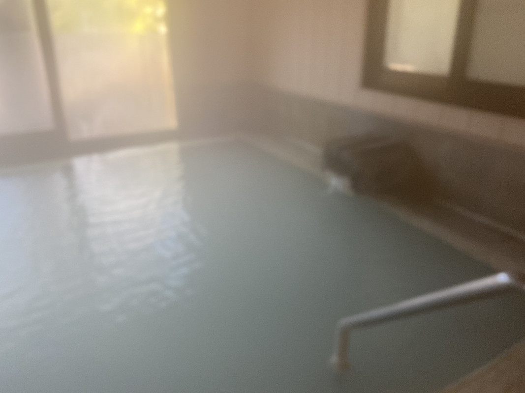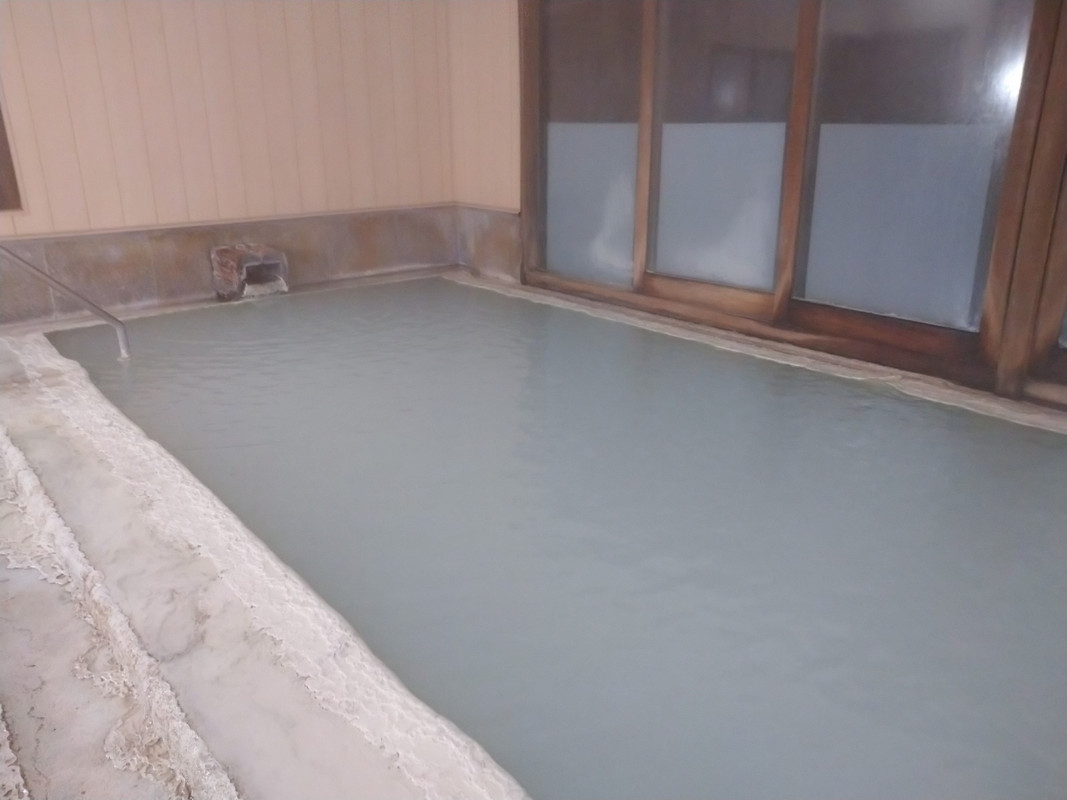 温泉は白濁で硫黄の匂いの良いお湯でした。朝食にこの温泉で作った