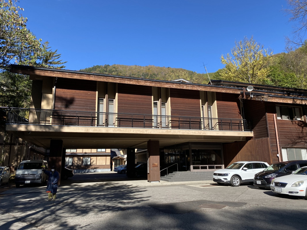18人のツアーで宿泊しました。部屋や部屋風呂から中庭が見え風情があります。温泉は硫黄の匂いがして色も綺麗です。ただ露天風呂まで裸で通路を30m行くのは寒かった、露天風呂からの景色はいい。夕食の岩魚の刺身と塩焼き、美味しかった。前菜も紅葉の形の冬瓜、柿のように見えるうずら卵など手が込んでいた。リンゴを容器にしたグラタンも美味しい、容器のリンゴも食べられます。松茸土瓶蒸し、黒毛和牛朴葉味噌焼き、デザートも良かった。朝食の飲用温泉水を用いたお粥は一度食べる価値あり。