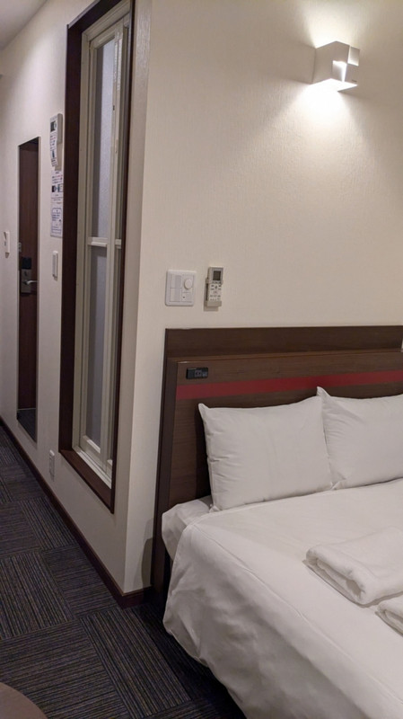 新横浜駅から徒歩5分ほどと近く、キレイで広めのお部屋が気に入りました。ただ、セパレートのトイレとバスは良かったのですが、トイレは座ると膝が当たりそうなくらい狭かった。それならユニットバスのほうがいい。朝食はフリードリンク付きのワンプレート。冷凍野菜を温めたものやヨーグルト、パンがついてました。欲を言えば部屋に卓上鏡があると良いなと思いました。