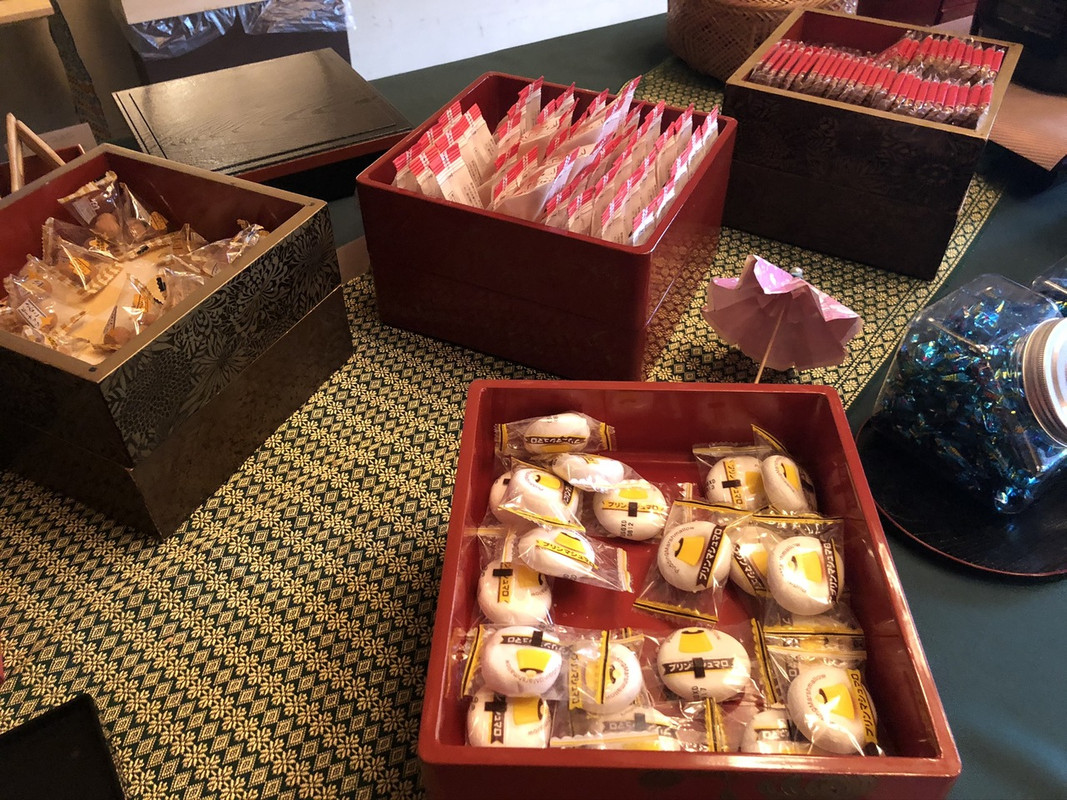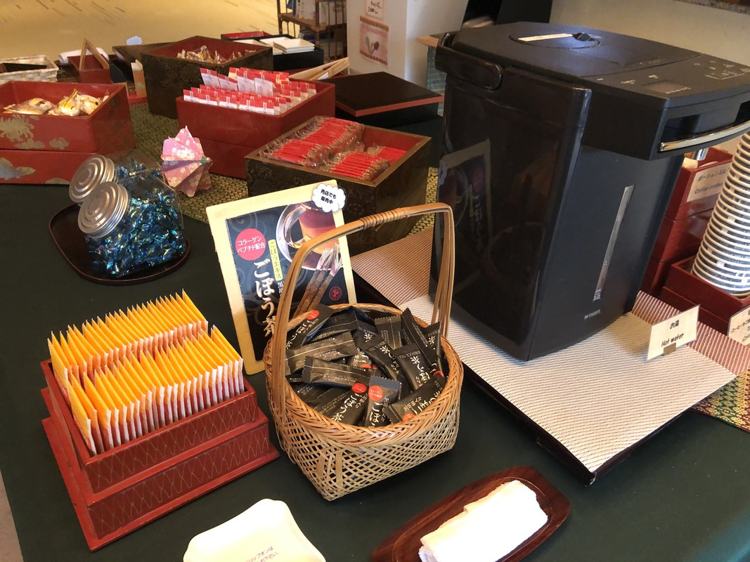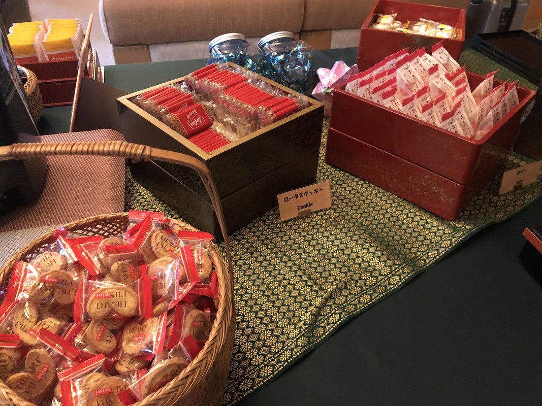機械でコーヒーのサービスもありますが 色々なお菓子が 並べられていました。