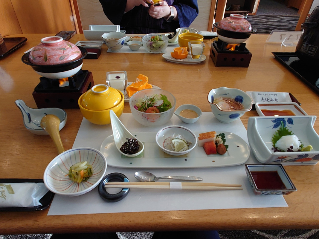朝食は二日酔いの人でもバランスよく食べられるように考えられた