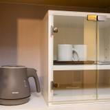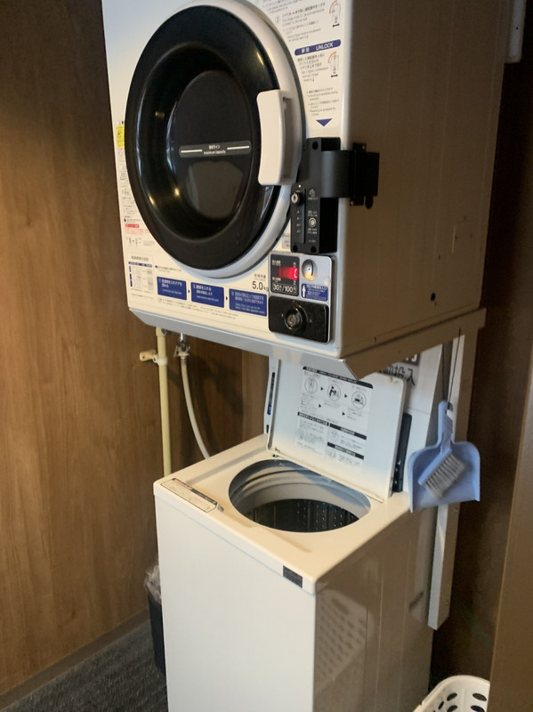 部屋にアメニティが置かれてなく、フロント横に設置されたコーナーから自分で必要分を取る方式です。1 / 8