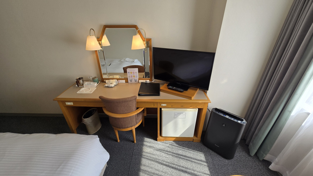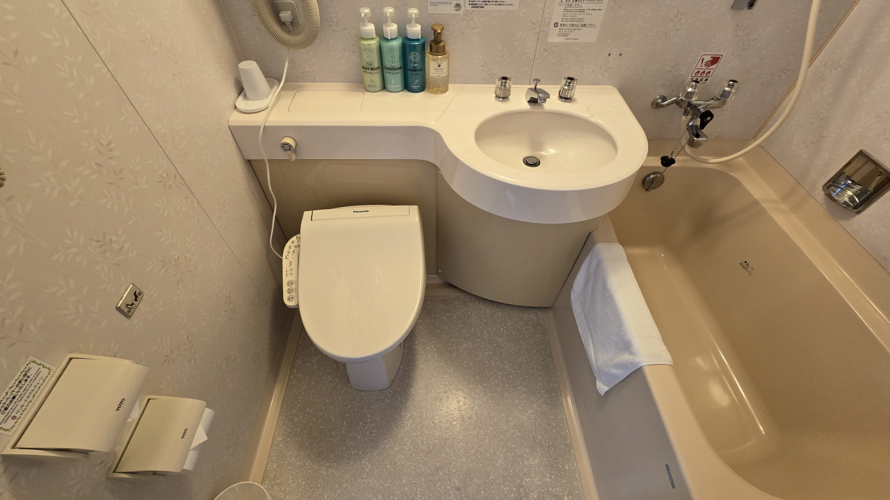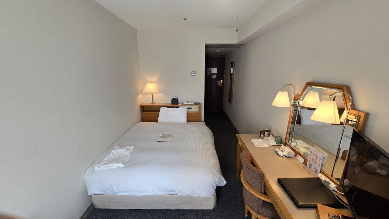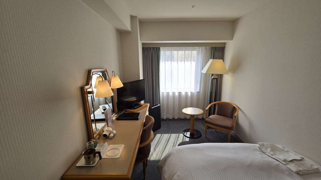 部屋はコンフォートシングルで17㎡で以前より良くなっていた点は、ベッドメイキングがデュベスタイルになった点と加湿空気清浄機が設置されてました、ベッドはシモンズの部屋で寝やすく、窓側にコンパクトながらテーブルに椅子もありシンプルですが過ごしやすい部屋でした、お風呂の水栓は混合水栓で特にシャワー側の水の出がすごく良く、シャワー時のお湯の調整に時間がかかり捨て水が多くなるのでもったいなく感じました、サーモ付きの水栓だと便利に感じました
