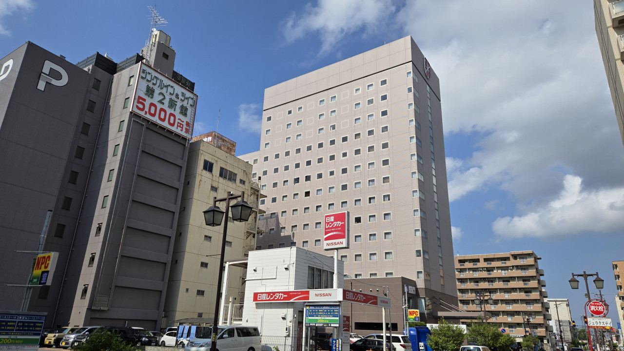 新潟駅の北口から出れば歩いてすぐ。コンビニやレンタカーの営業所も近く便利なロケーションです。