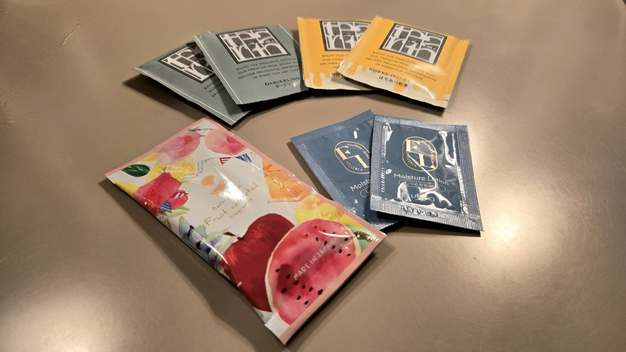 アメニティは1階のアメニティバーより必要な物をもらいますが、通常の物の他に入浴剤、基礎化粧品、紅茶、人気のはちみつ紅茶、インスタントコーヒーもあって良かったですね、また1階にはコーヒー、紅茶等が無料で飲める宿泊者用の自販機もありました