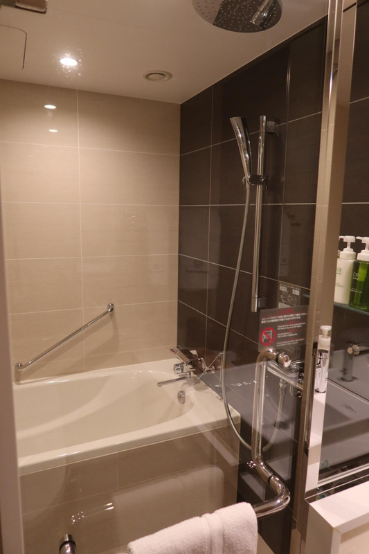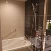 1、シャワーはレバーを上げると頭上の固定シャワーが出るタイプなので気づかずに操作すると水難事故になる。あと、外国人がシャワー床へ靴で入りそうなので、このダイワロイネットスタイルのシャワー・バスは日本人には向かないかも。1 / 4