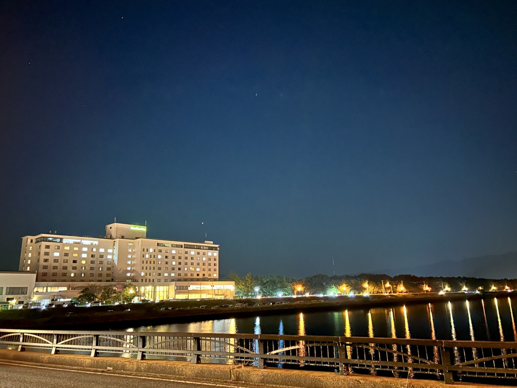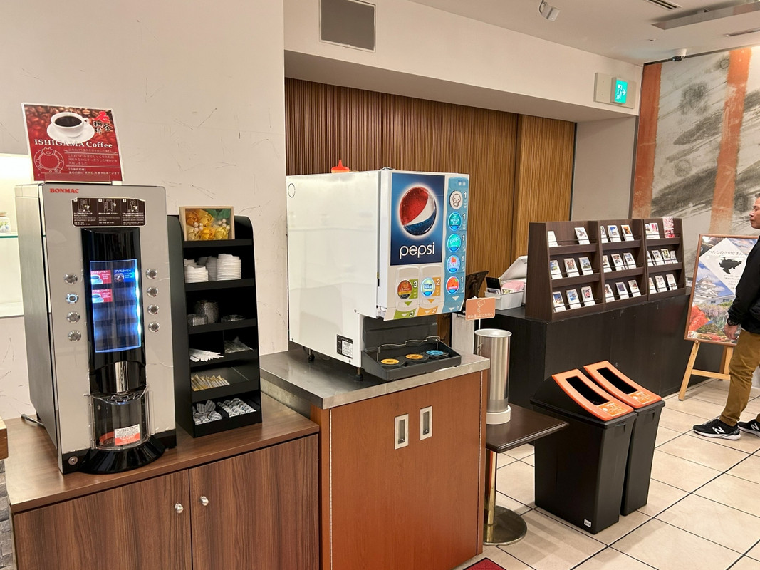 唐津市街中心部までは徒歩30分、唐津湾と虹の松原と松浦川に囲まれたホテルです。広々としたエントランス&ロビーの天井には唐津くんちの絵。「唐津くんち」の期間でしたので宿泊料は高騰していました。2名1室素泊まりで1泊4万円越え…おそらく平常時の2~3倍くらいかと…。祭の半年くらい前からホテル予約サイトで探して何とか確保できました。客室など設備は平均的なホテルです。宿泊者専用のウエルカムラウンジ「レインボー」では、ドリンクとスナックがフリー…これは良かったです。くんちの見どころの一つである宮島醤油前までは徒歩15分でした。