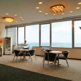 駐車場に通じる玄関・フロントが7階にあり、大浴場はエレベータで1階に降りて階段で地下にある。海に面した造りで展望は抜群です。玄関からも、部屋からも海の向こうに熱海城が望める絶景です。食事はレストランの運営を外部業者に委託してグループのクラブが同じメニューにしているようでいわゆる湯上りに浴衣で一杯やりながら出来上がりを舌鼓とまではいかなかった。