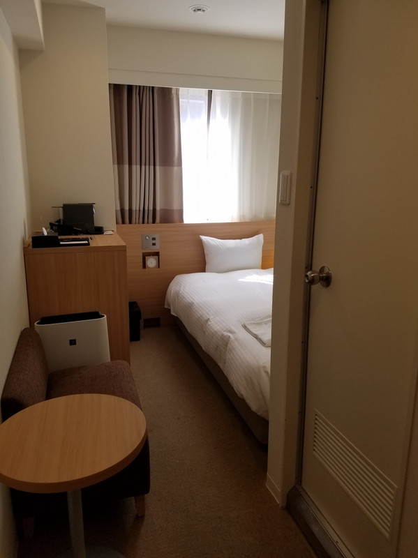 シングルルームはかなり狭く、椅子、テーブルありますが、設置場所の都合で椅子に座りながらテレビがあまり見えない構造です。