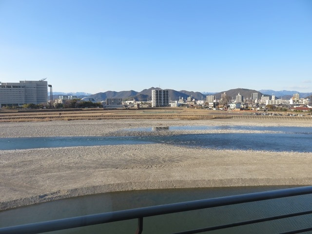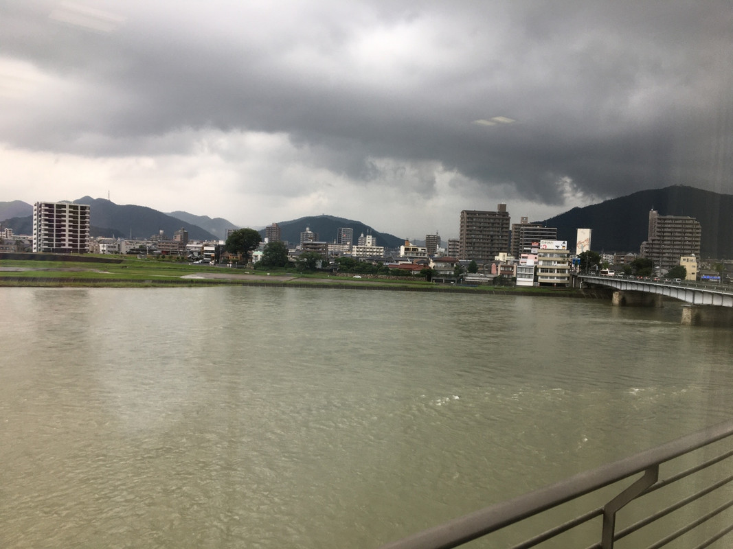 客室に古さ見られるものの、大きな1枚窓からは長良川の雄大な眺め