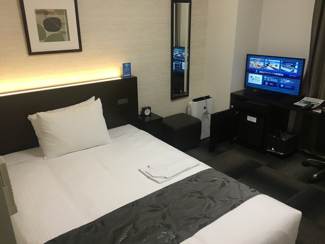 シングルルームでもダブルベッド、ライティングデスクを備えたワンランク上のビジネスホテルという感じでした。
