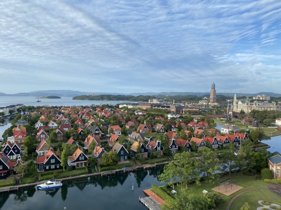 部屋の窓から見下ろすハーバーの景色は、まるで外国にいるかのように、かわいくて素敵でした。ハウステンボスのショーも見えました。ハウステンボスの入口の目の前にあるので、便利です。遊び疲れた体は、温泉の大浴場でゆっくり休めることができました。朝食のオムレツがおいしかったです。