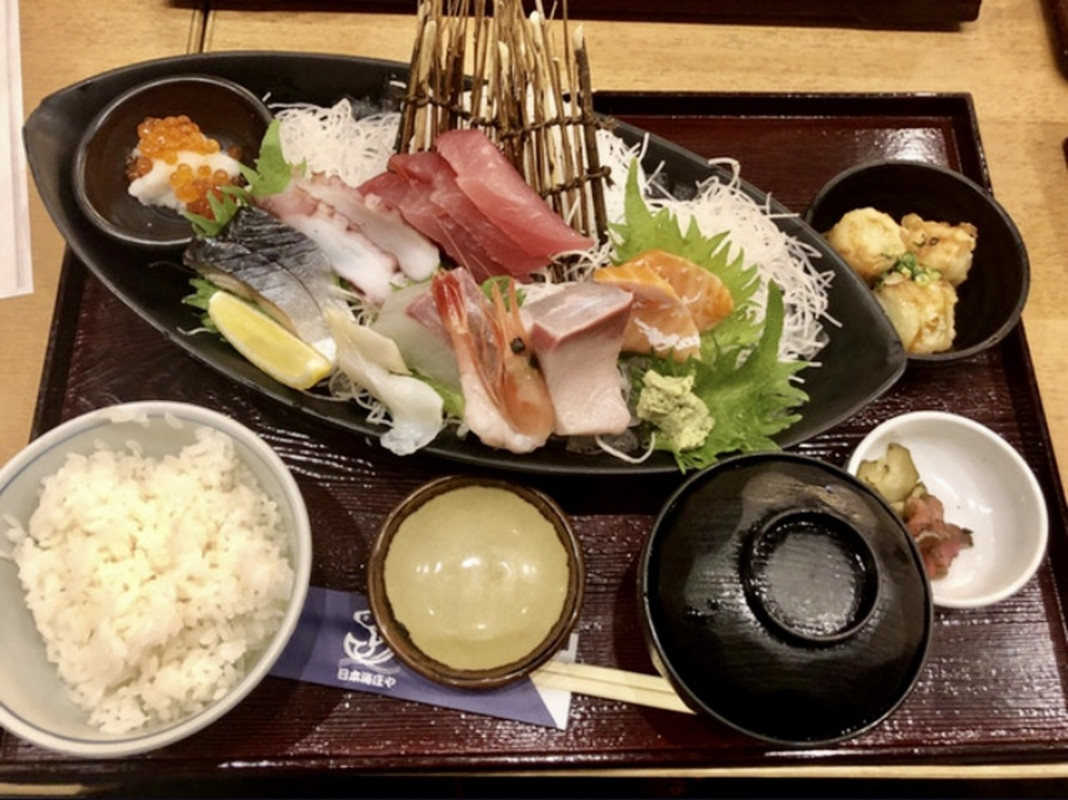 松花堂弁当(連れ)と、刺身定食(僕)です。