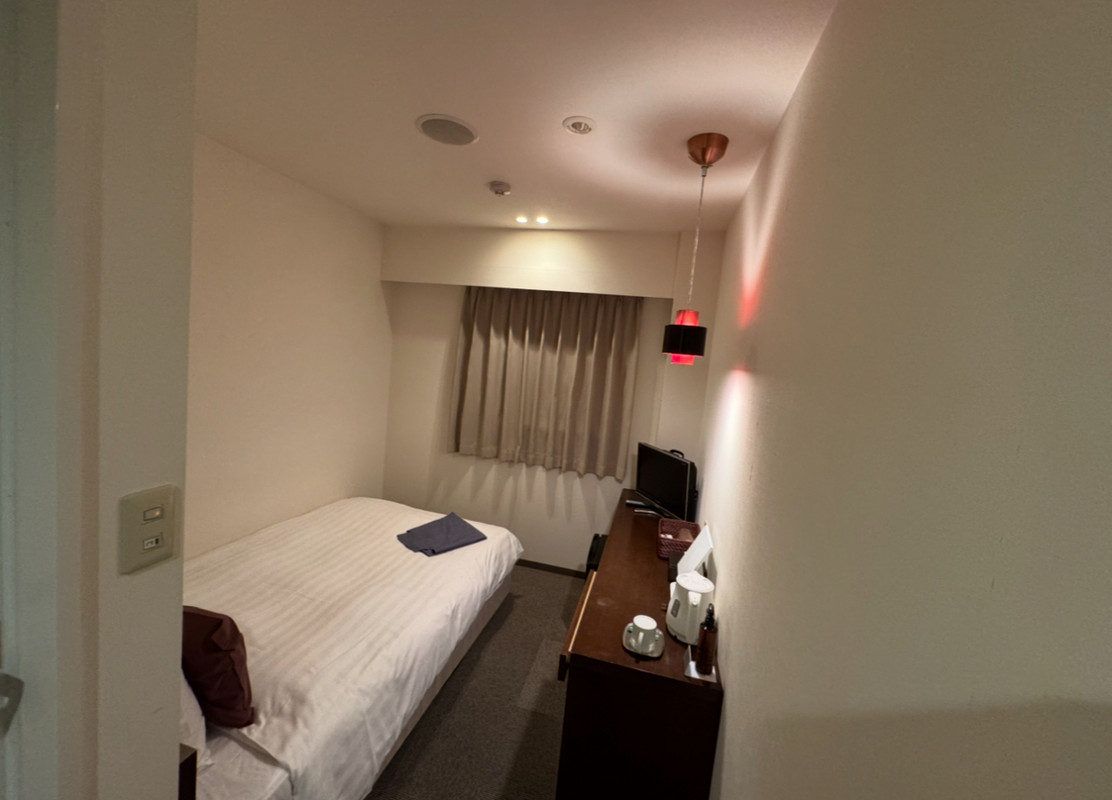 部屋は普通のビジネスホテル並みでした、線路に面していますが、電車や新幹線の音は