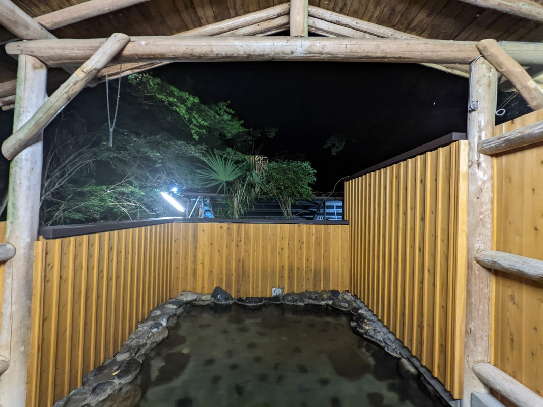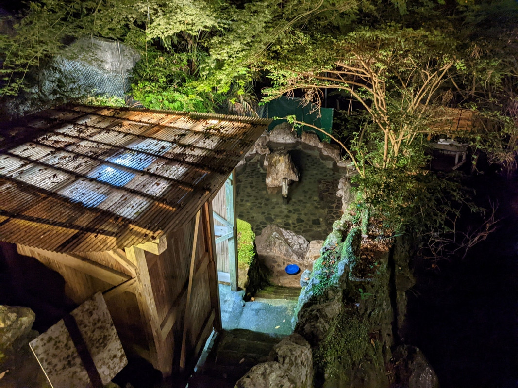 十津川温泉のさらに奥にある一軒家の温泉です。川沿いから建物に上るところに、川沿いの有名な大きな源泉風呂があります。宿泊者には源泉風呂に加えて、内湯と貸し切り風呂が二箇所、貸し切り風呂もフリ一で使えます。トイレ付なら本館利用です。