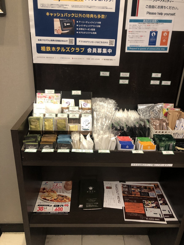 浜松町駅から10分。大門が最寄りです。新橋6丁目のバス停も近いです。部屋は標準的なビジネスホテルです。電気ポット、空気清浄機ありました。アメニティは1階で取る方式。はちみつ紅茶がおすすめです。近くにナチュラルローソンとファミマがあります。