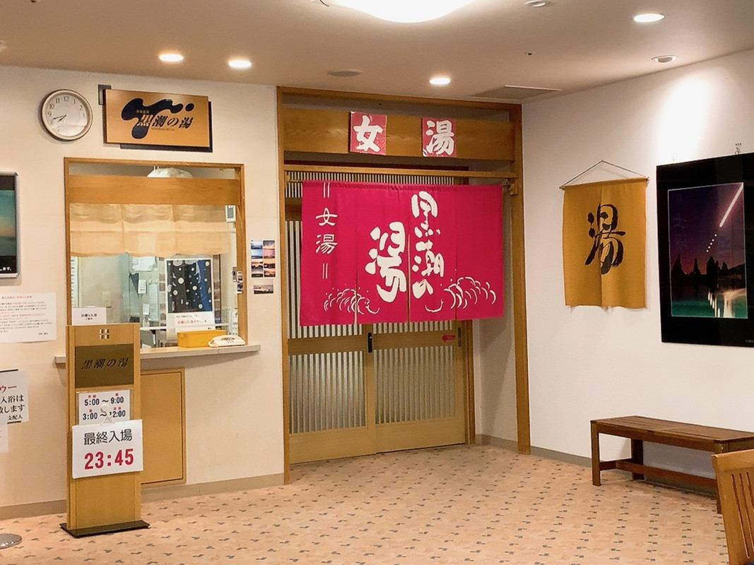 以前宿泊したことのあるホテルで、今回は日帰り入浴だけを体験しました。午後三時から午後九時までの利用で1200円。大浴場の内湯は扇形で30畳ほどの広さです。広いからゆったり気持ちよく浸かれます。黒潮の湯と呼ばれる露天風呂がこれまたいい。湯舟は広くなっていて、自然石を配した造り。お湯が出るところは橋杭岩を模したように薄茶色の石が垂直に立っているのが面白い。湯舟からは橋杭岩がよく見えるのが素晴らしい。両脚を思いっきり伸ばせるし、あがるころには体全体が温まってくる。午前の部は二時間だけの利用になるが、入浴料はなんと半額の600円。ホテルの大浴場と露天風呂の両方が利用できてコスパが高い。