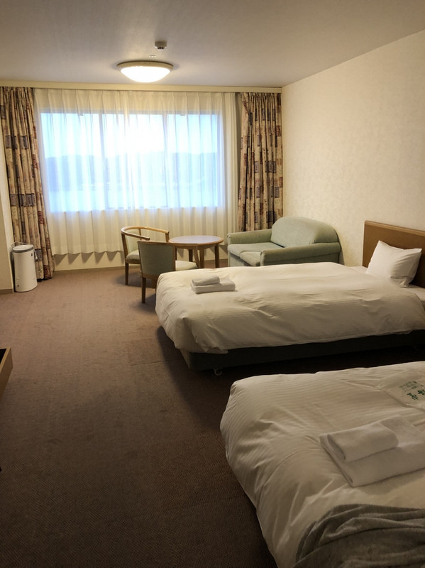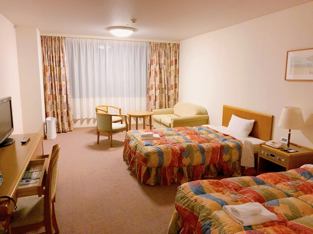 新しいホテルではなく、2018年に串本ロイヤルホテルからリブランドされたので、懐かしい感じの内装&ベッドでした。 ただ、山側の禁煙ツインルームで、36㎡もあり、1人で泊まるのは勿体ないくらいでした。