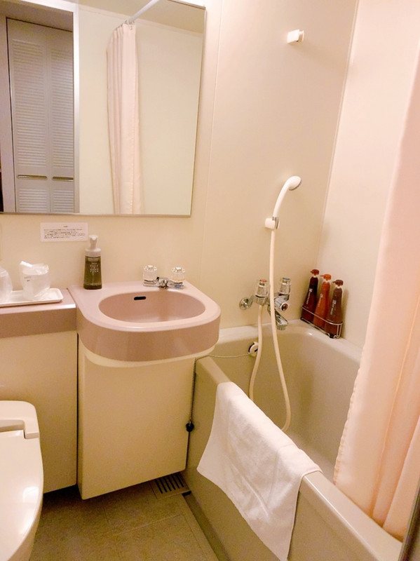 ユニットバスはいたって普通のビジネスホテルタイプ。 でも、大浴場がありそちらを利用したので、お部屋のお風呂は入ってません。