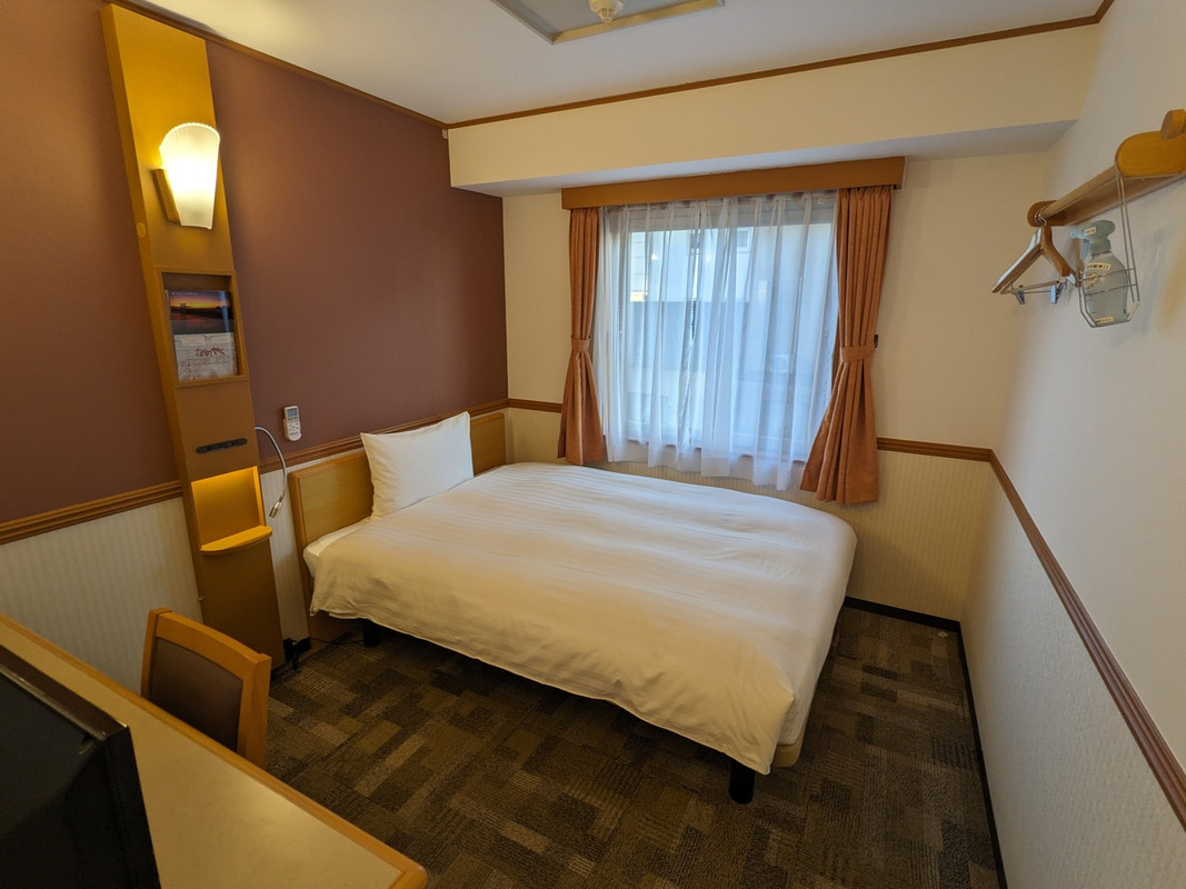 金沢駅の鼓門を抜けて、駅前を右手に5分くらい歩く距離間の立地、途中にコンビニがある。部屋は最低限の広さはあり、清潔感はあった。無料朝食があると記載されていたが、開始時間前に行列ができており断念、1泊500円の駐車場から早々に、おさらばし、途中の食堂で。