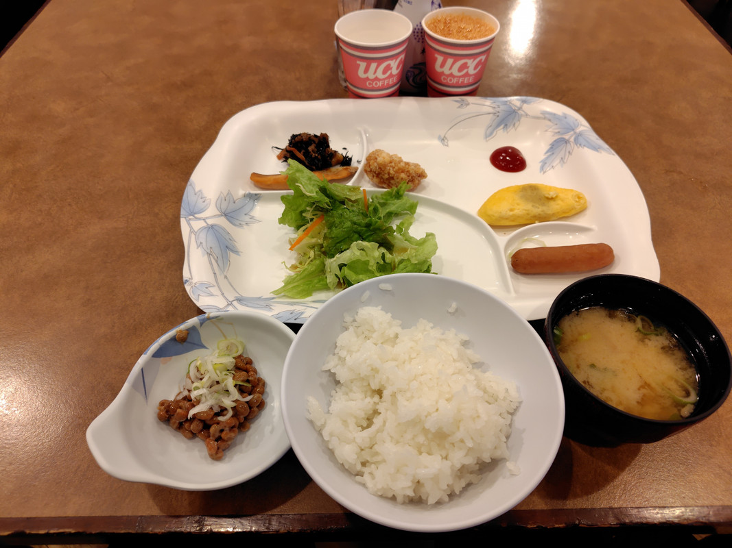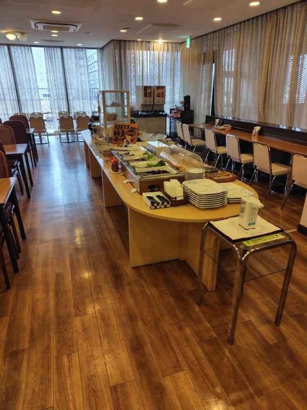 宿泊代込みの朝食は、2階にある食堂のビュッフェでいただく。個別のパックではなくボウルに山盛りになった納豆がたっぷりあり水戸らしさが感じられた。1 / 6