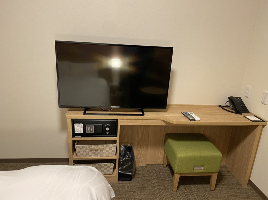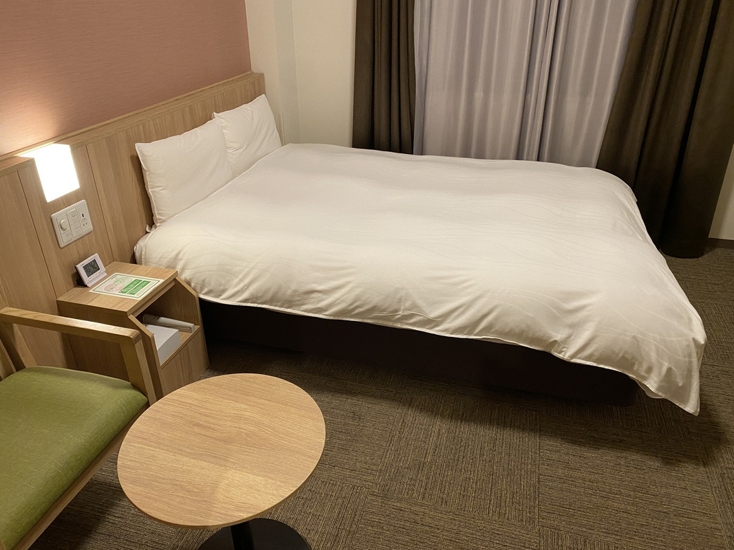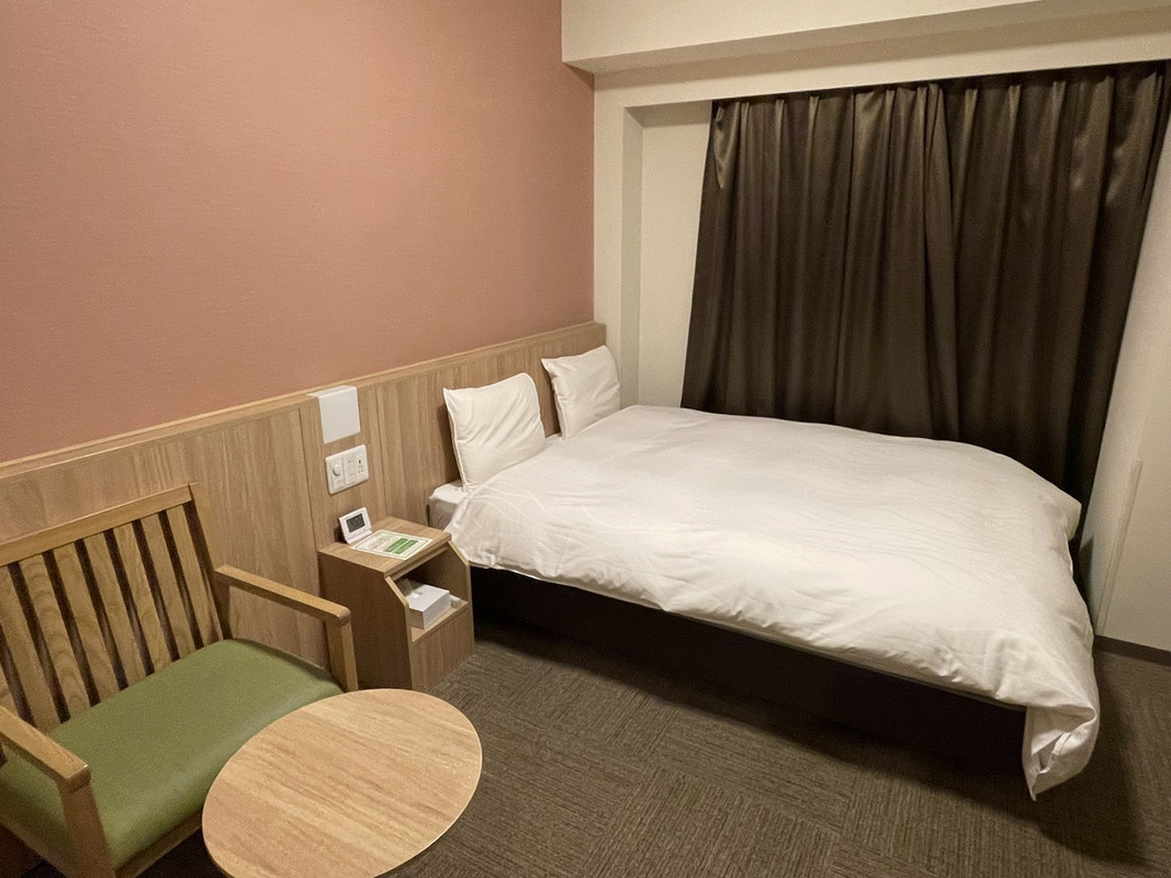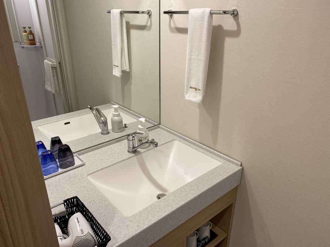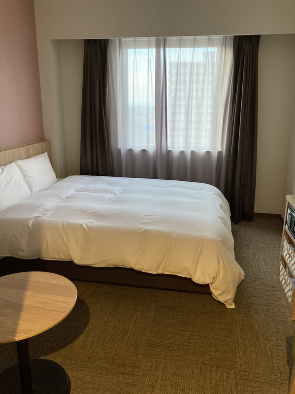 水戸駅から徒歩10分、は事前に覚悟していたが、坂(それほどきつい傾斜ではないが、キャリーがあると結構辛そう)を登らないといけないのは想定外。コンビニが目の前にあるが、横断歩道が近くにないのでかなり遠周りが必要。必要なものを事前に調達して、チェックインするのが無難。