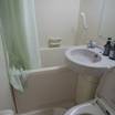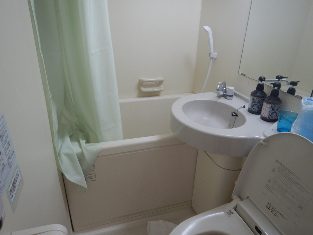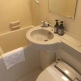 ホテルの建物自体は古いが、客室はリノベーションされているので、特に宿泊には支障がない。歯ブラシとタオルはある。浴衣は有料。300円。バスルームはユニットバスで、狭いのは致しかたない。安く泊まるにつもりならいいかもしれない。1 / 5