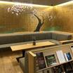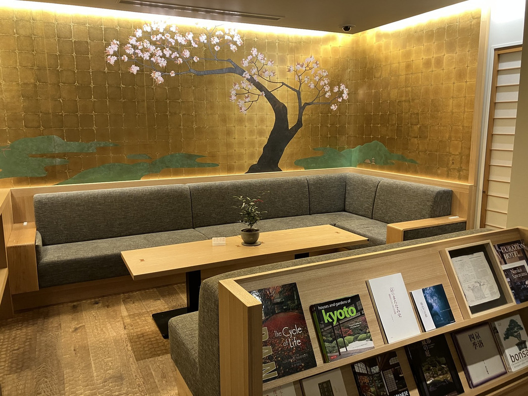 地下鉄の京都市役所前駅から徒歩6.7分くらい。近くにバス停もあるので観光には至便。また飲食店、カフェ、お店もたくさんあり困ることはありません。一階ロビー奥にカフェコーナーがあり、本も置いてあってライブラリーのようにも使えます