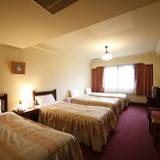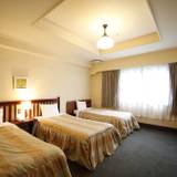一人泊でもツイン、2泊目はトリプルでした。夜の部屋は電球色な