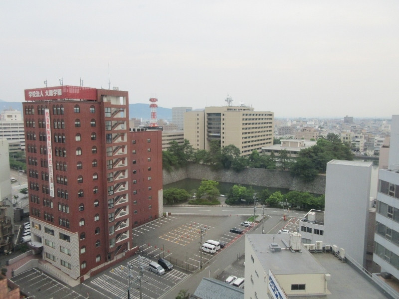 駅近くですが、福井駅の線路わきを歩いて向かった時は、すぐに見えなくて少し不安でした。正面玄関は恐竜広場に接する大通りに面していたので、ホテルの裏側から入ることになりました。部屋は最上階で、大浴場も同じ階だったので便利でした。