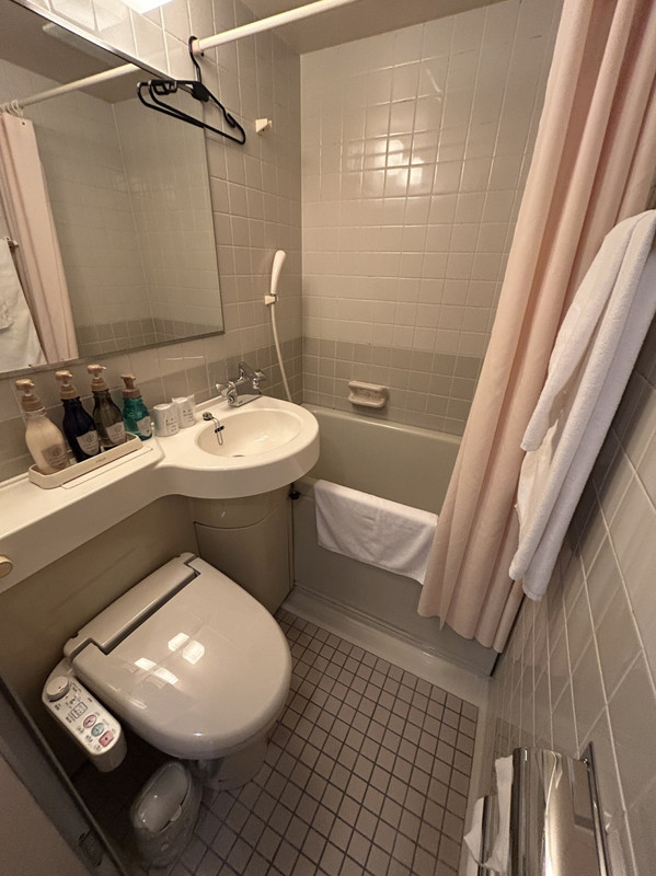 江坂駅から歩いて5分もしないところにあります。途中コンビニや関西スーパー、飲食店も色々とあり夜ご飯も江坂で済ませました。チェックイン後アメニティなどはフロント横にあり、大浴場などは男性のみで女性は部屋の中にあるシャワーと浴槽となります。