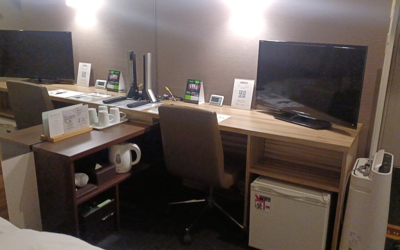 エレベーターは入口左手に1基。枕が高くて硬めだった。チェックイン時に女性に頂けるアメニティは袋に入ったフェイスマスク等のセットだった。机の横の壁に大きな鏡があり使いやすかった。1 / 3