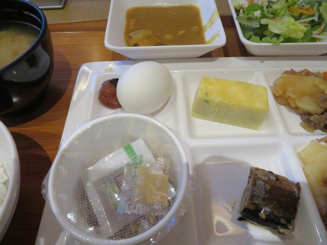 朝食は高知独特でカツオカレーがあり、筍の煮付けや肉じゃがのお味はとても良かった。