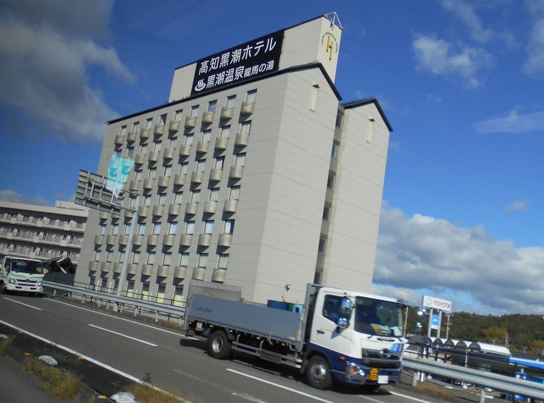 高知駅前近くのスーパーホテルを1泊利用。祝日で混雑していたからか、駐車場の空いていたスペースには全て三角コーンが置かれていた。駐車する前にフロントに車の大きさを伝えて、駐車する場所を指定されるシステムだった。