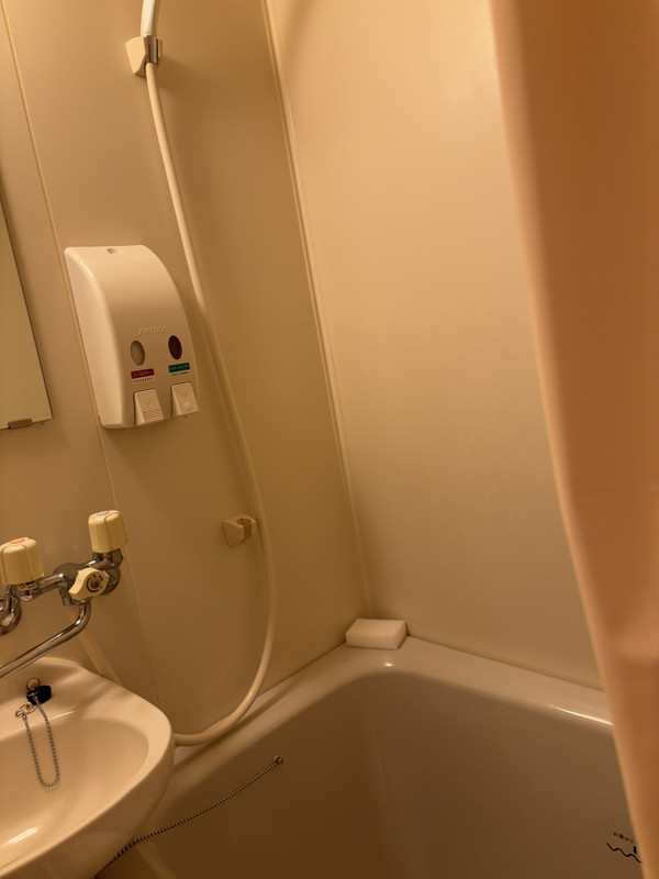 浴室にタオルを干すためのタコ足がかかってるのがご愛敬