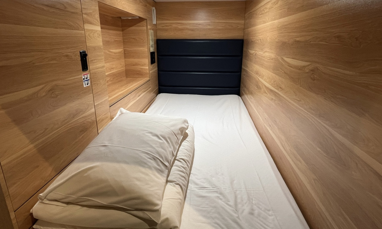 カプセルホテルに宿泊しました。コロナの影響で通常営業とまではいかないですが、無料送迎バスもありますし、成田空港周辺で比較的安く前泊できる宿として重宝しています。カプセルホテルとしてみると市街地のホテルよりは高いですが、施設が新しいことと、露天風呂に入りながら飛行機が見られることが嬉しく、付加価値が十分にあると思います。