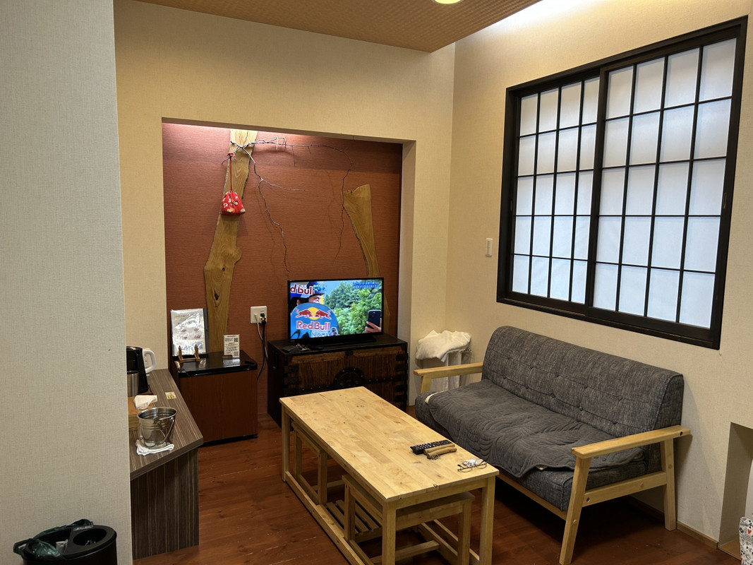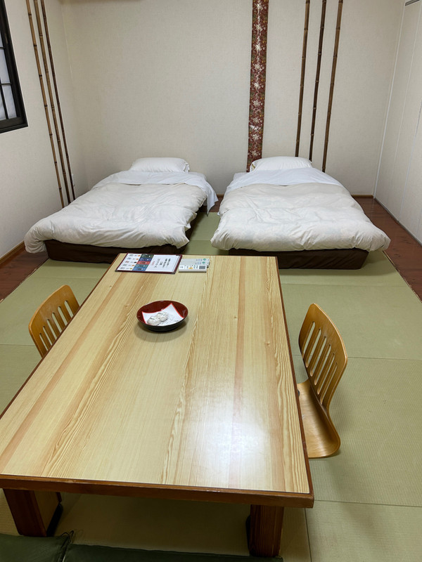福島県の山の中のお蕎麦屋さんに行く予定を立てた所からの宿探し。次の日に仙台方面に行きたかったのでこちらの青根温泉にある「山景の宿流辿」を予約しました。確かに外観は古びていますが、予約した和洋室タイプのお部屋はリノベーションされているのでしょうかトイレも人感センサーで電気もついて夜中も安心。でも洋室タイプと言っても通常のベッドでは無いので寝たり立ったりはちょっとしんどい!