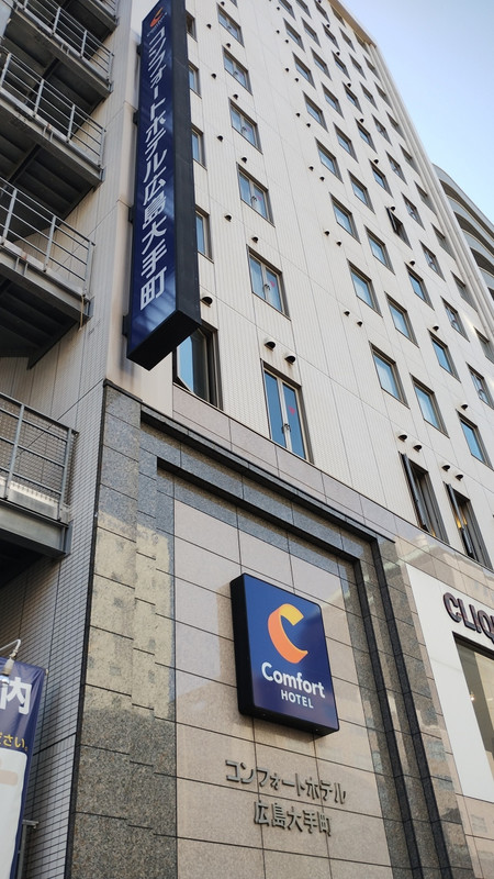 広島駅からはやや離れた、平和公園に近い立地。ホテルに向かう際はタクシーで10分以上かかった記憶。チェックアウトの際はまずフロントでタクシーを呼んでもらうが、大抵捕まらないのだそう。その日も例に違わずホテル提携のタクシーを呼んでもらう事は無理だった。ホテル前の大通りはタクシーもよく走るので、下で捕まえて下さいとの事。大人3人、子供2人だったのでできれば呼んでもらえたら確実だと思っていたが、幸いすぐ拾えた。