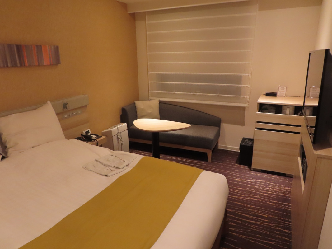 ホテルに1室のみのジュニアスイートは最上階14階にあって線路と逆側に位置します。部屋は50㎡で入口側にコーナに配置されたソファーにテーブルがあり、奥にベッドスペース、水回りがあります。ベッドはシモンズのデュベスタイル、加湿空気清浄機と快適でした。スイート以外はテレビやUB等リニューアルされてますが、スイートの家具等はきっとオープン当時の物で少し歴史を感じるので少し手を入れたら良いのにと思いました。スペースは広いのでゆったりしていて良かったです。オークラニッコーホテルズに属しているので、接客も含めもう少し頑張って欲しいですね。朝食は仙台名物の笹かまぼこ、ずんだ餅、牛タンカレー等もあって楽しめます。
