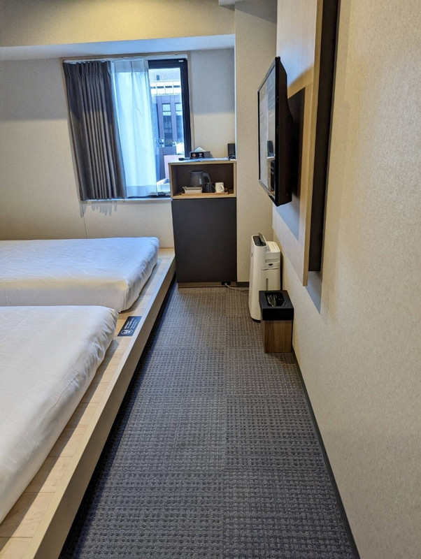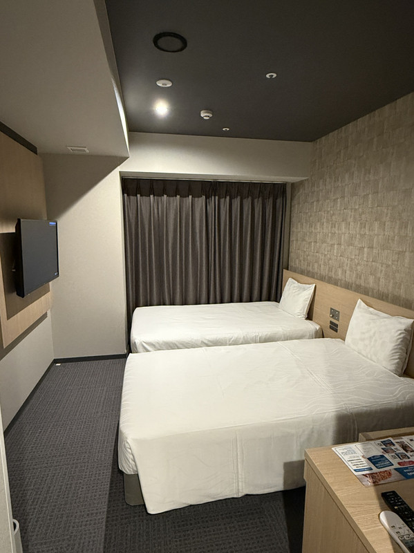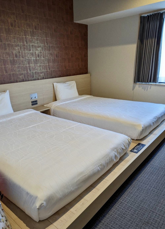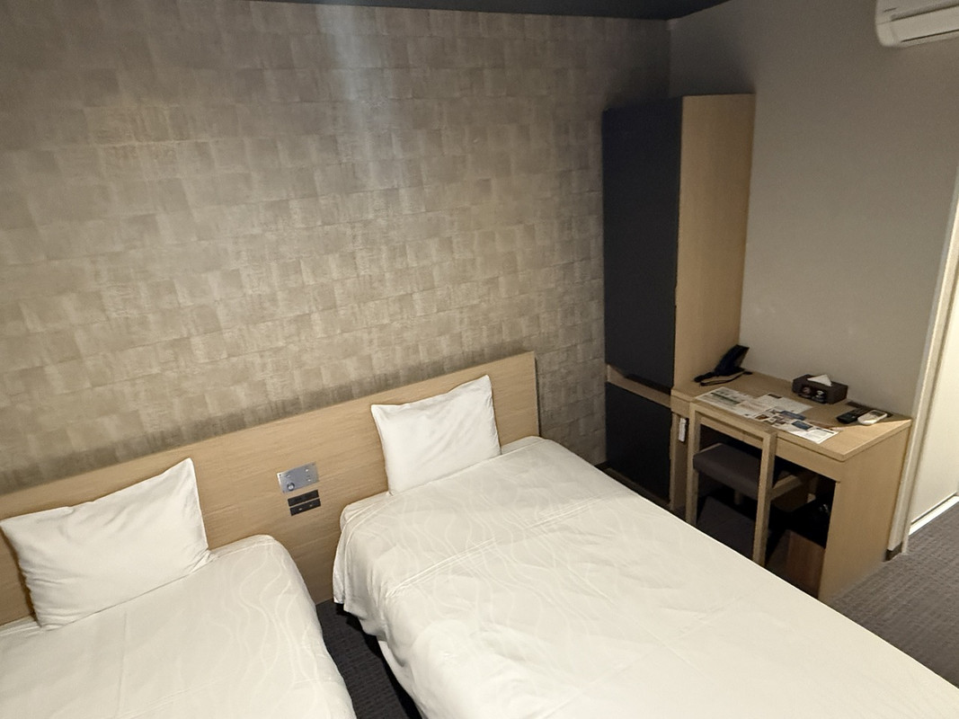 4月になってから北陸応援割で予約しました。この時点ではツインルームしか空きが無く、素泊まりで1万円弱。それを一人で利用。当然ながらコスパは悪くなります。しかしツインルームといえども狭くて、この部屋を二人で使うとなると家族でもキツイでしょう。