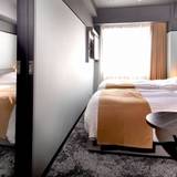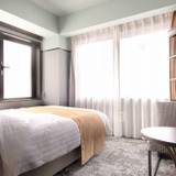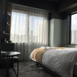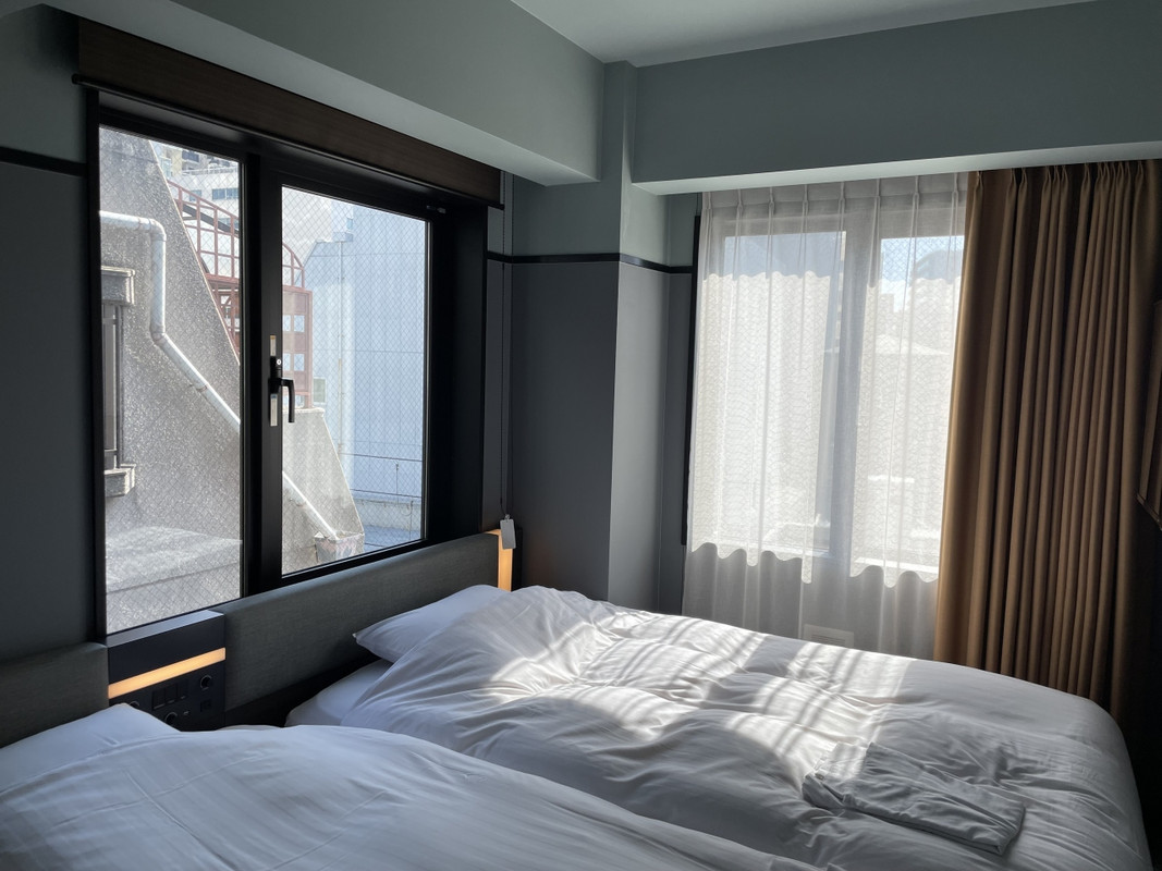 JR、阪神元町駅至近。ホテル入口は元町商店街に面している。ツインは18.8㎡で横向きに並べられたベッド付近が若干手狭だが、二面に配置された大きな窓と、ビジネスホテルに標準装備のデスクがないので、意外と窮屈な感じはしない。2Fのカフェスペースは宿泊者がいつでも自由に利用可能。朝食はビュッフェではなくオーダー式。