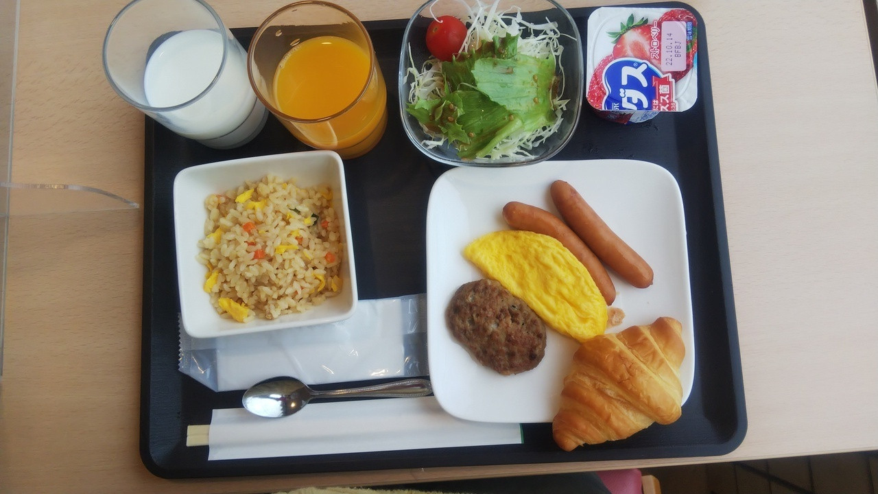 素泊まりでもチェックイン時に朝食を予約すると、550円で食べられます。品数が多いとは言えないものの、朝食には十分でした。
